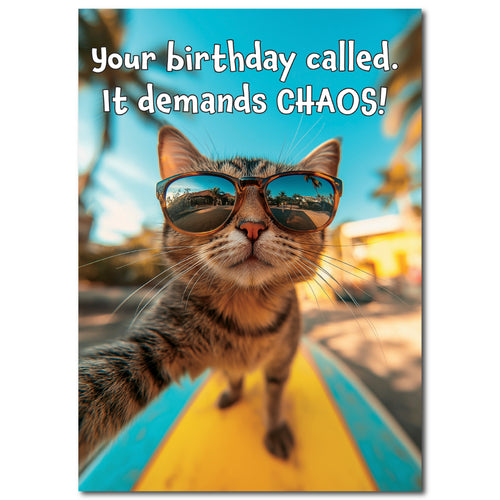 • Funny Cat Birthday Card for Men, Women, Friends, Family or Coworkers, 5x7 with Envelope