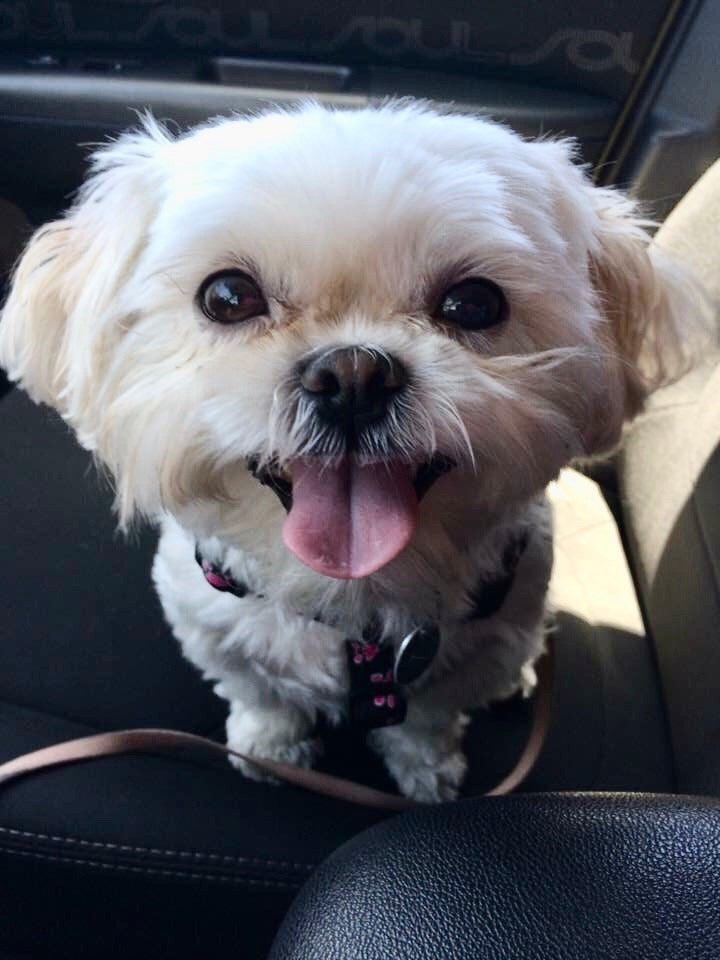 A sympathy card for the loss of a dog. The front has an illustration of a white dog and says,