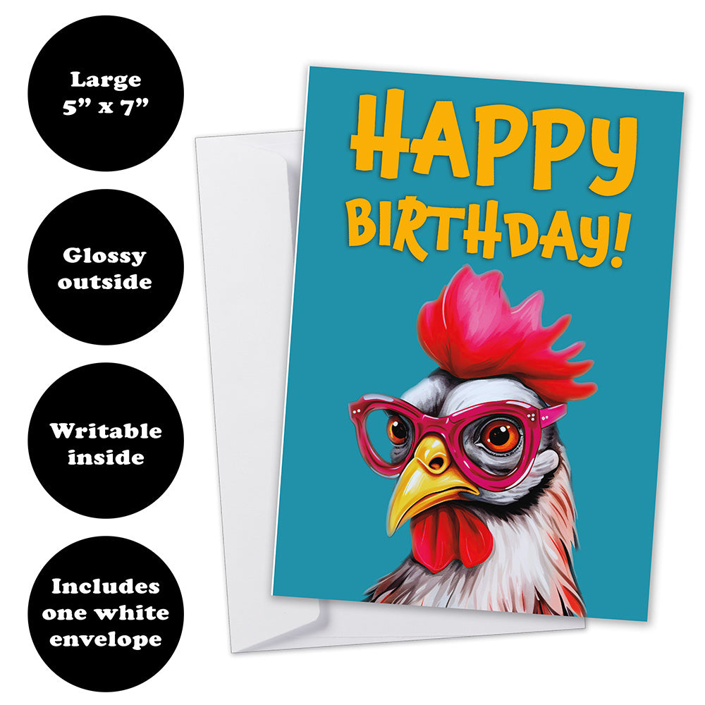 Whether it's for a friend, family member, or colleague, this chicken-themed card with its unique style and humorous message is bound to bring a smile. Perfect for those who adore quirky animal designs and love a good chuckle on their special day.