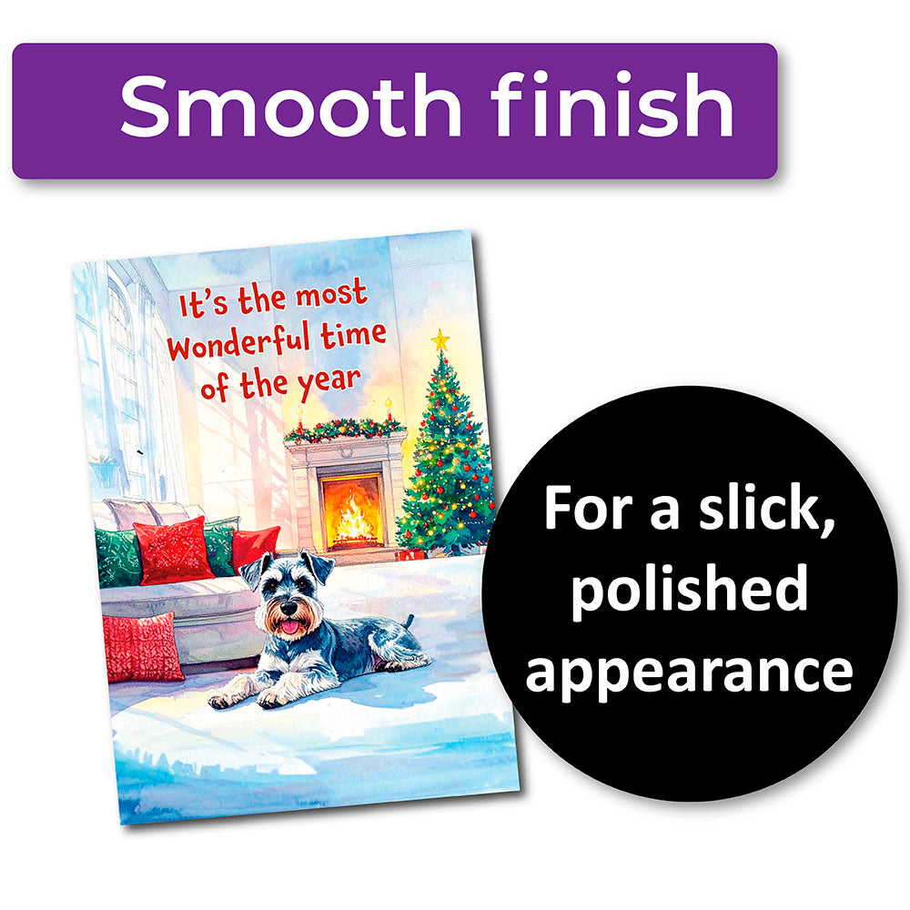 Celebrate the joy of the season with It’s the Most Wonderful Time of the Year — a heartwarming holiday card featuring an adorable miniature schnauzer relaxing by a glowing fireplace. Perfect for miniature schnauzer lovers and anyone who appreciates cozy Christmas charm!