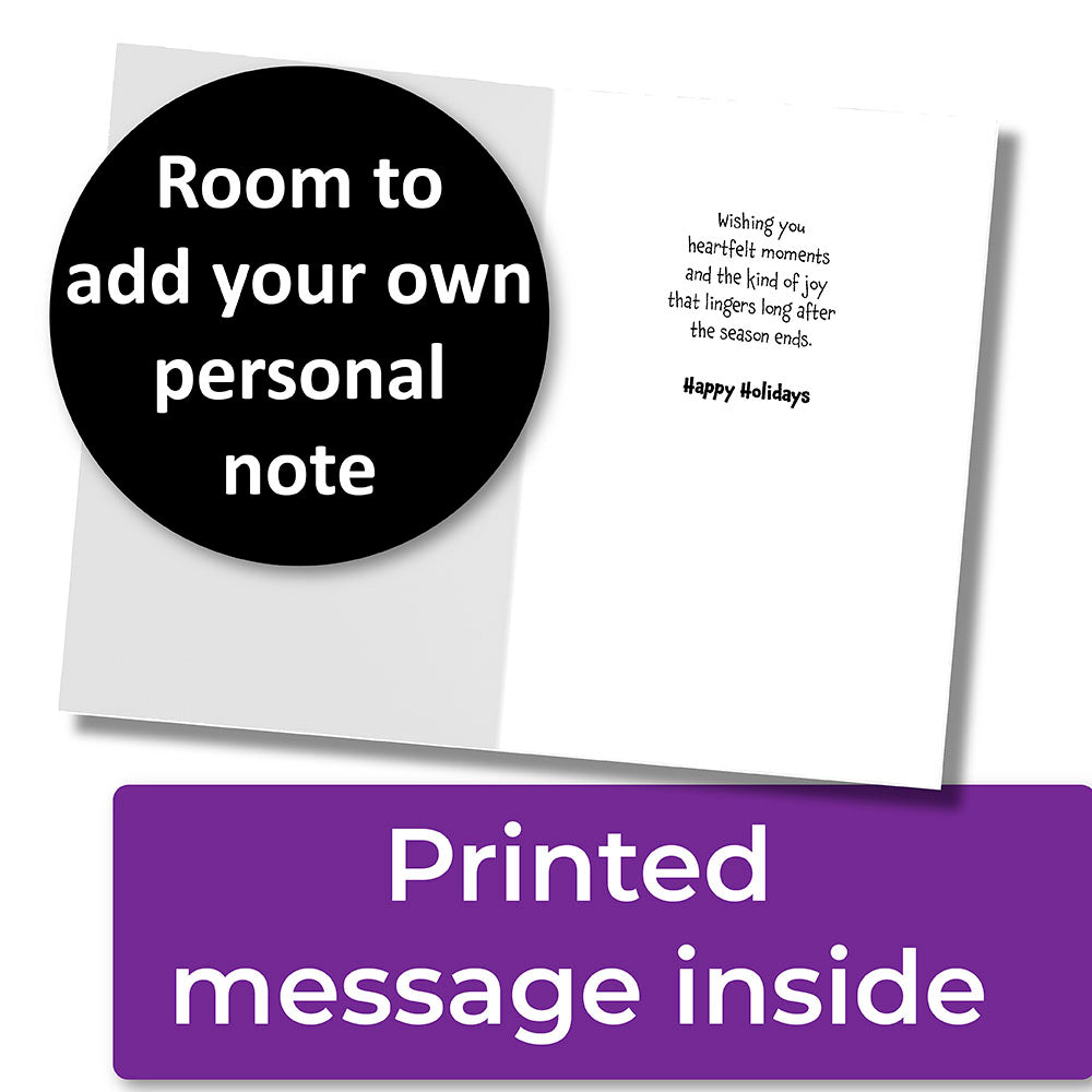 This charming card isn’t just a fun holiday greeting — it’s part of a mission to help miniature schnauzers in need. 50% of net profits from each purchase go to Schnauzer Love Rescue, Inc., supporting nearly 100 foster families caring for miniature schnauzers until they find their forever homes.