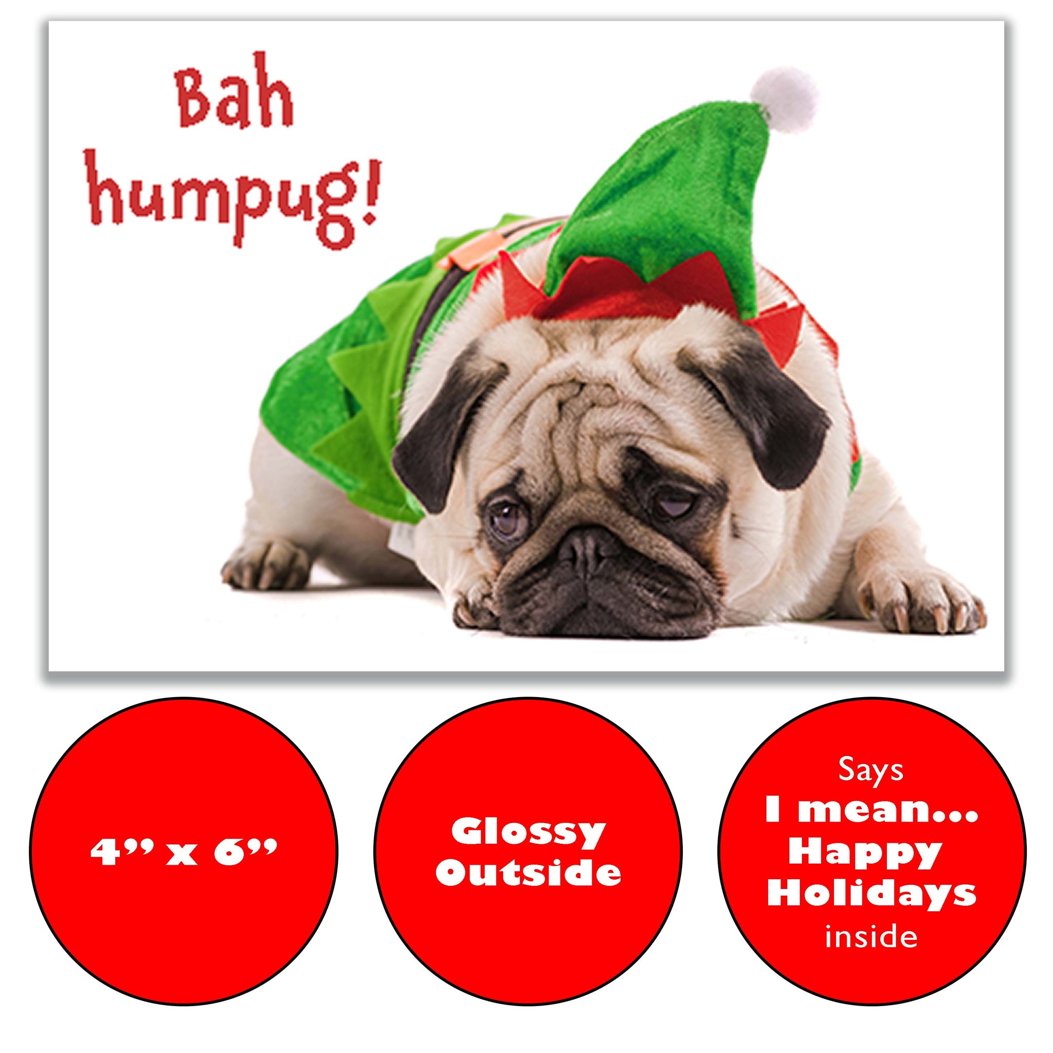 - Cute design: Adorable pug dressed in a festive outfit with the funny message "Bah Humpug!" on the front.