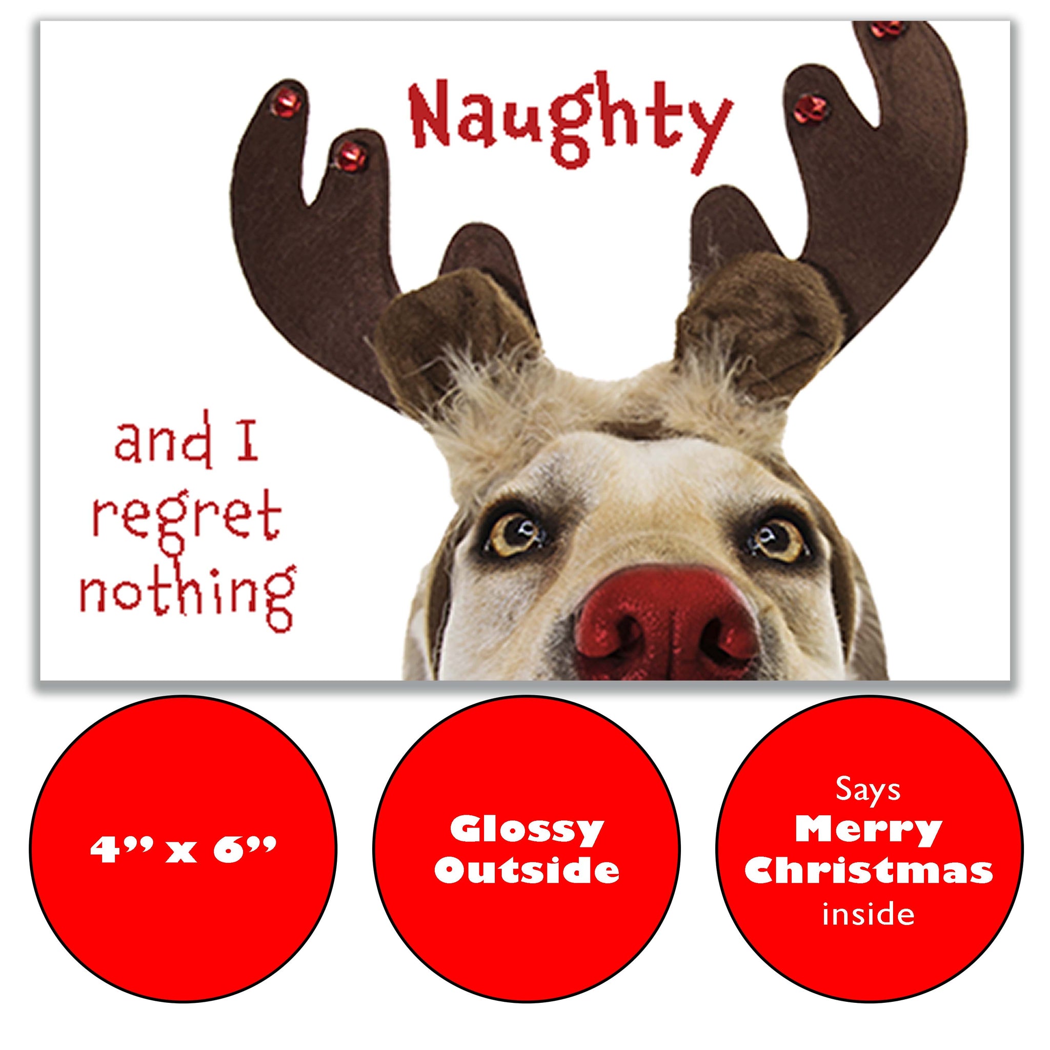 - Hilarious design: "Naughty and I Regret Nothing" message with a dog in reindeer antlers and red nose! Each card says, "Merry Christmas!" inside, perfect for spreading festive cheer. 😁