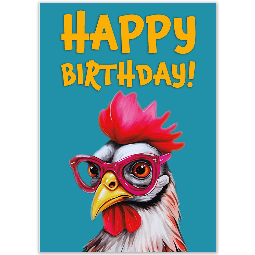 Whether it's for a friend, family member, or colleague, this chicken-themed card with its unique style and humorous message is bound to bring a smile. Perfect for those who adore quirky animal designs and love a good chuckle on their special day.